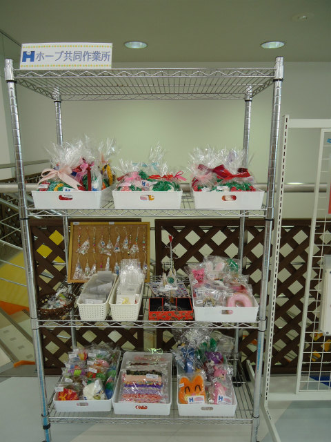 NPO法人ホープ共同作業所とNPO法人留萌ふれあいの家の手作り作品の販売をしています。
