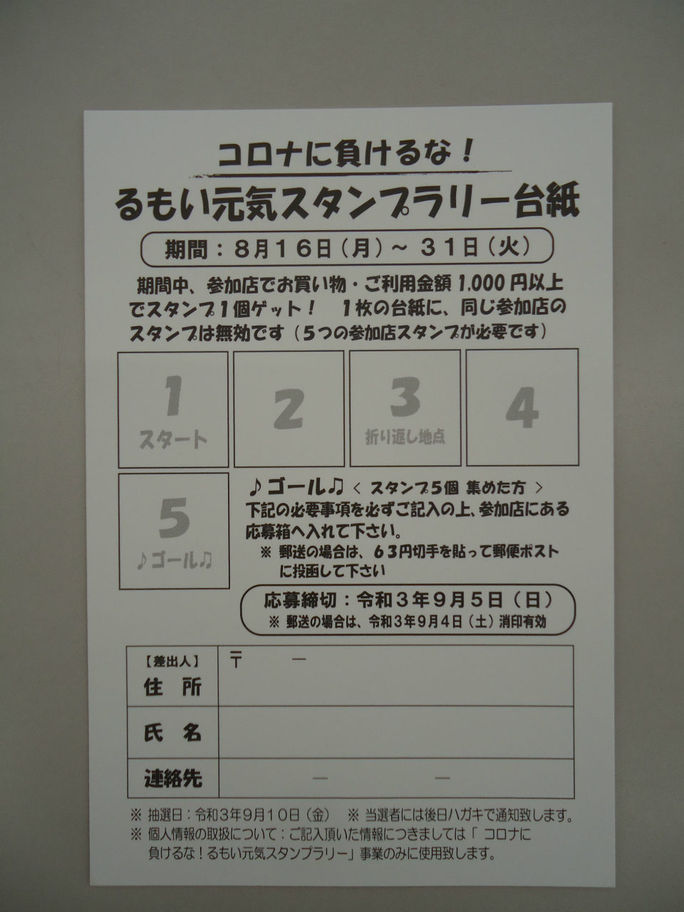 コロナに負けるな! るもい元気スタンプラリー