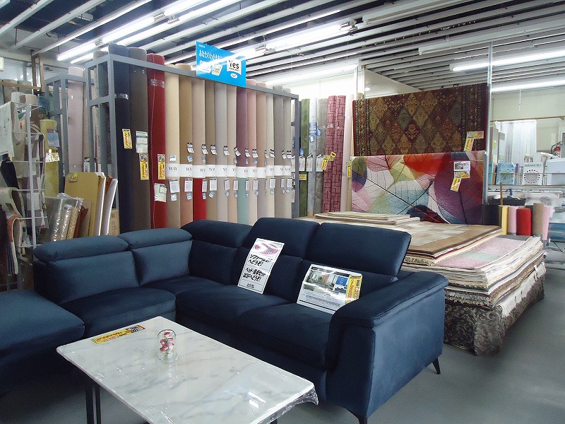 店舗には家具・インテリア(特にソファー、ジュータン、ベッド)を多数展示中です。お買上げの際には、不要な家具の処分やカーペット敷き込みのお手伝いなど充実したサービスを提供させていただきます。
